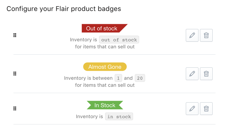 This release completes Flair's inventory badge offering with the addition of a new In Stock badge.